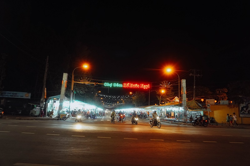 Vào ban đêm, những ánh đèn bắt đầu phát sáng, tôi di chuyển vào chợ Đêm Hồ Nước Ngọt để tìm những món ăn dân dã ở nơi này. Trong chợ đêm, người ta bán quần áo là chủ yếu, đi sâu hơn nữa mới có quán ăn đặc sản Sóc Trăng. Đến Sóc Trăng, bạn đừng bỏ qua các món ngon đặc sản như: Bánh Pía, bún gỏi, bún nước lèo Sóc Trăng…