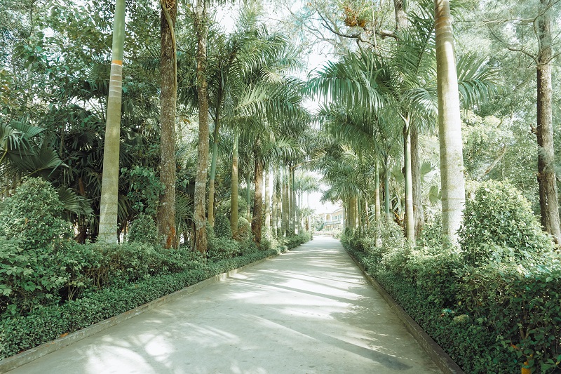 Sau khi khám phá xong chùa Kh’leang, tôi đến một ngôi chùa khác cũng đẹp không kém là chùa Somrong. Đường đi vào ngôi chùa này rất đẹp, có hàng cây xanh mướt mát.